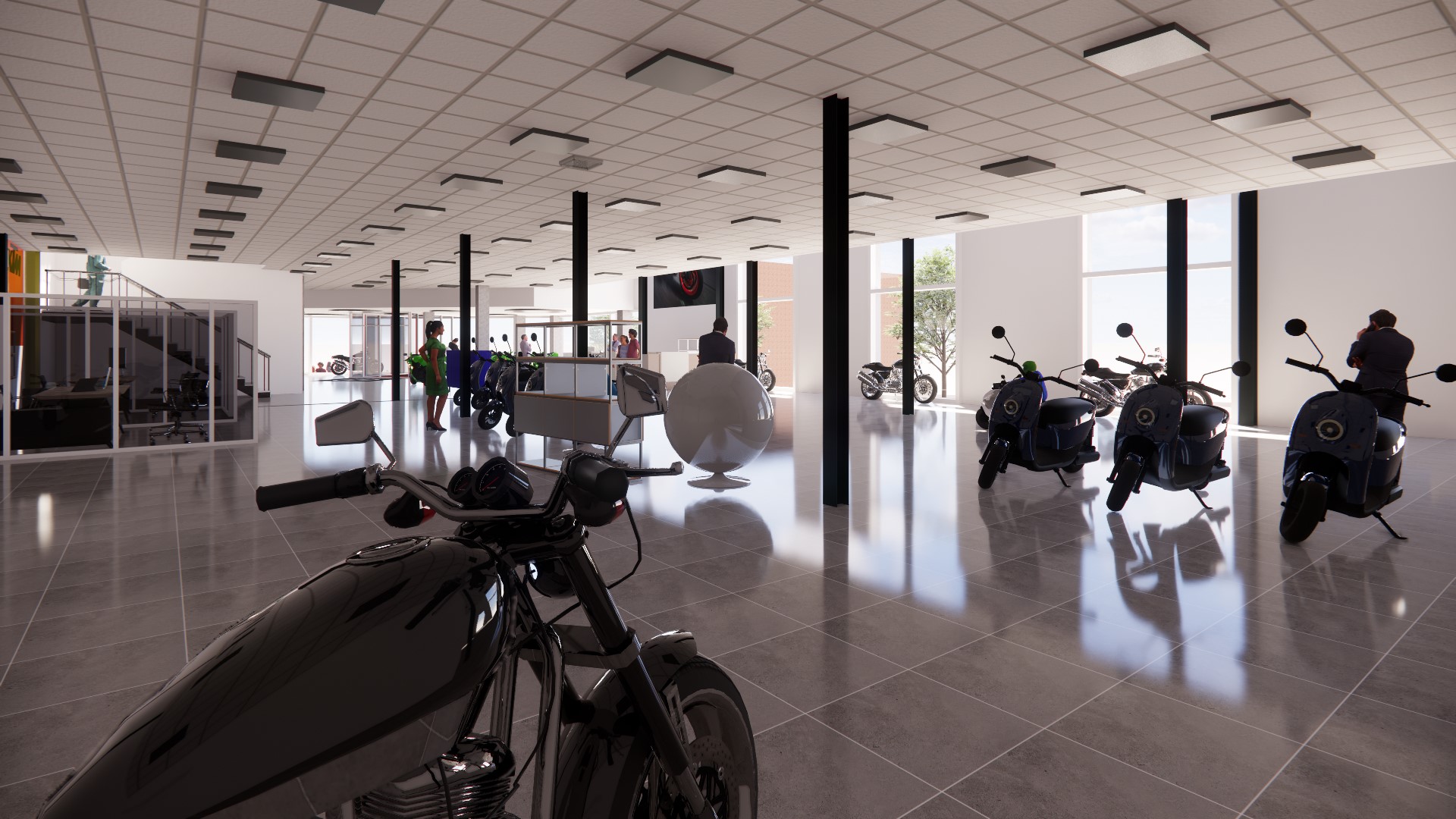 Tras un incendio, el histórico concesionario de motos BASOLÍ de Girona necesitaba recupera el espacio quemado. Se aprovecharon las obras para adaptar el local a las nuevas normativas constructivas y modernizar las instalaciones, dando más visibilidad y luminosidad al conjunto.